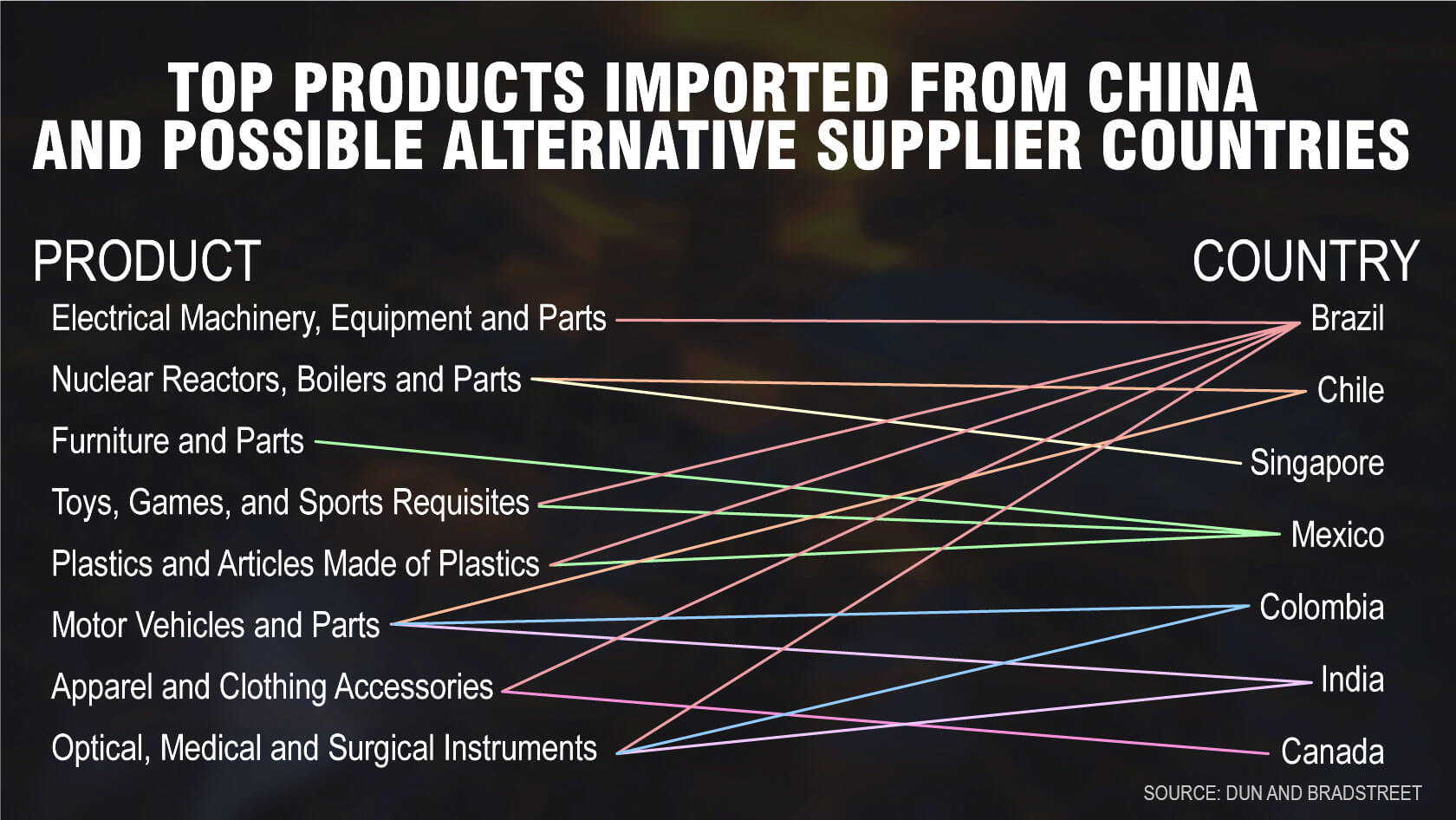Companies that choose to change supplier sources will base their location change on exactly what product they need. For instance, furniture companies could choose new suppliers in Mexico while electrical machinery could be sourced from Brazil. Dun and Bradstreet broke down some of the supplier alternatives in its report.