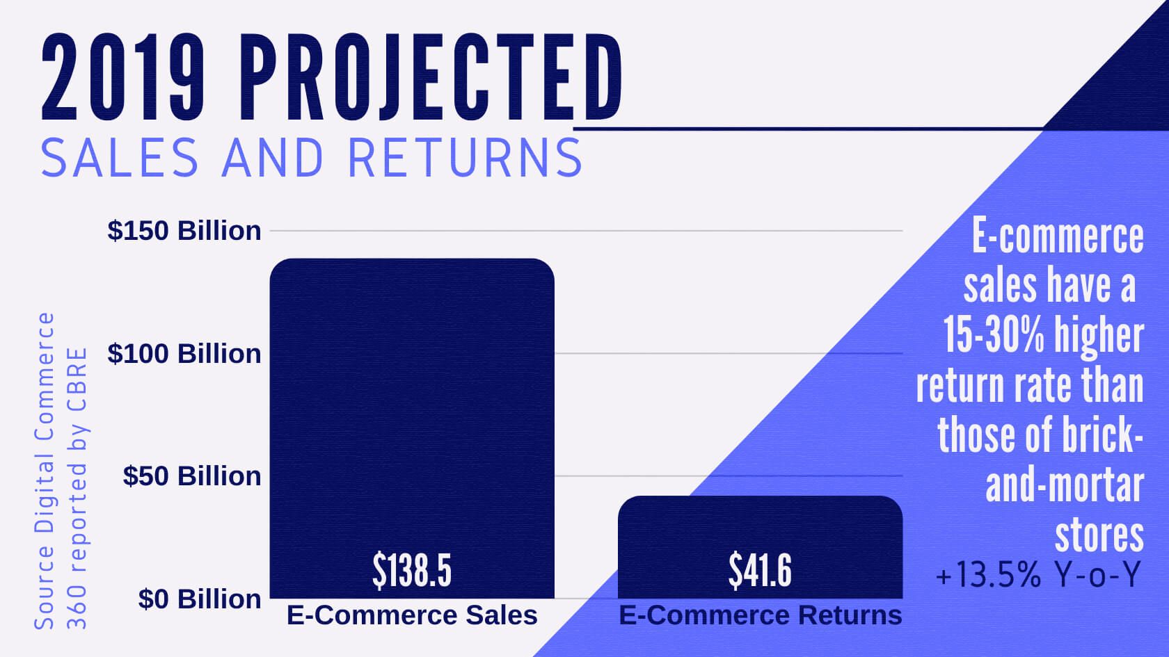 The CBRE, an industrial real estate firm and a global leader in the provision of outsourcing services to major occupiers, released a report detailing figures from the 2019 U.S. holiday e-commerce sales and returns. The CBRE’s recent report states that e-commerce sales are expected to reach $138.5 billion, with the total value of e-commerce returns this holiday season to hit $41.6 billion. This represents a 13.5% annual increase.
